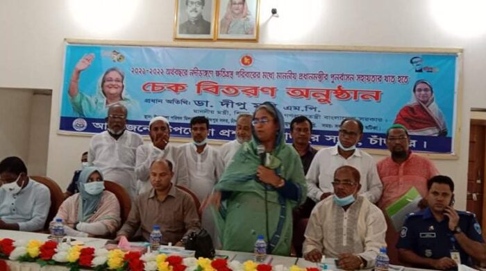 বিশেষ প্রতিবেদক: চাঁদপুরে ২০-২১ অর্থবছরে নদী ভাঙ্গনে ক্ষতিগ্রস্ত পরিবারের মাঝে প্রধানমন্ত্রীর পুনর্বাসন খাত থেকে অনুদানের চেক বিতরণ করা হয়েছে।শনিবার (২৩ জুলাই) সকালে চাঁদপুর সদর উপজেলা পরিষদ মিলনায়তনে চেক বিতরণ অনুষ্ঠান বিস্তারিত