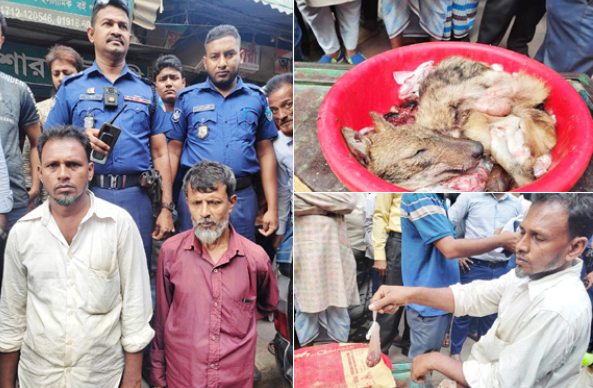 হাজীগঞ্জ প্রতিনিধিঃ হাজীগঞ্জে বাজারে শিয়ালের মাংস বিক্রয়ের অপরাধে ২জনকে আটক করেছে পুলিশ। আটককৃতরা হলেন- কালচোঁ ইউনিয়নের সিদলা গ্রামের সোনা মিয়ার ছেলে মো. জুলহাসে এবং একই গ্রামের পাটওয়ারী বাড়ীর সিরাজ পাটওয়ারীর