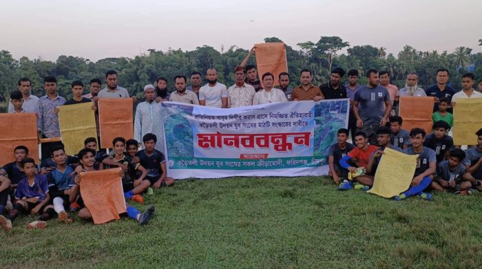 ফরিদগঞ্জ প্রতিনিধিঃ চাঁদপুরের ফরিদগঞ্জ উপজেলার ঐতিহ্যবাহী কড়ৈতলী খেলার মাঠ রক্ষা ও সংস্কারের দাবীতে খেলোয়াড় ও এলাকাবাসী মানববন্ধন করেছে। রোববার (১৬ অক্টোবর) বিকালে এই মানববন্ধন অনুষ্ঠিত হয়। মানববন্ধনে বক্তব্য রাখেন, বাংলাদেশ
