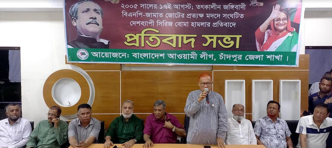 ২০০৫ সালের ১৭ ই আগস্ট, তৎকালীন জঙ্গিবাদ বিএনপি – জামাত জোটের প্রত্যক্ষ মদদে সংগঠটিত দেশব্যাপী সিরিজ বোমা হামলার প্রতিবাদে চাঁদপুর জেলা আওয়ামী লীগের আয়োজনে প্রতিবাদ সভা অনুষ্ঠিত হয়েছে।গতকাল ১৭ আগস্ট সন্ধ্যায় জেলা আওয়ামী লীগের দলীয় কার্যালয়ে এ প্রতিবার সভা অনুষ্ঠিত হয়।
