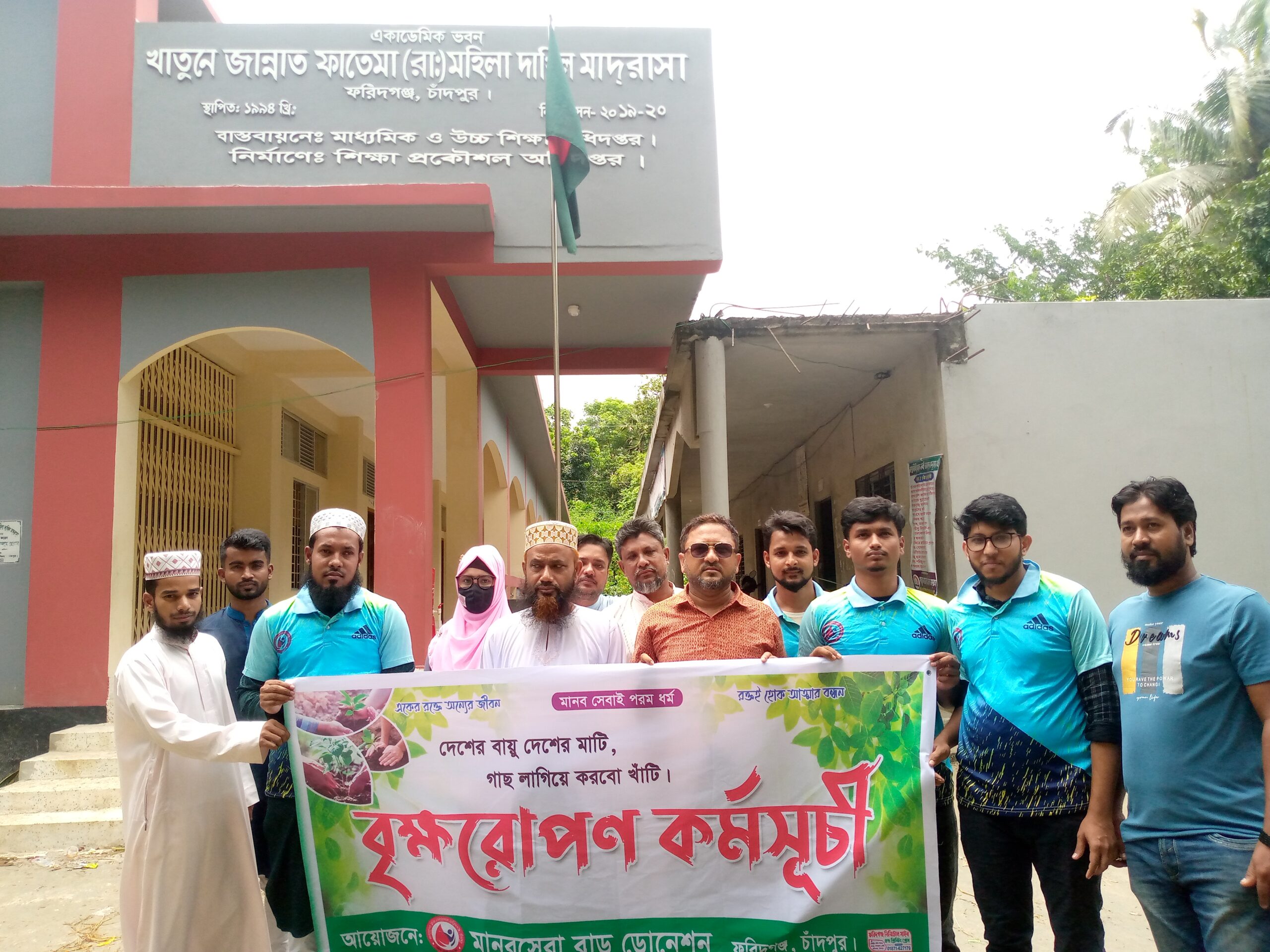 ফরিদগঞ্জ  মানবসেবা ব্লাড ডোনেশনের উদ্যেগে বৃক্ষরোপন কর্মসূচি পালিত হয়।