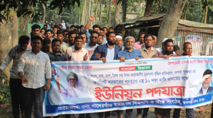 হাজীগঞ্জ প্রতিনিধিঃ চাঁদপুরের হাজীগঞ্জ উপজেলার ৯ নং গন্ধর্ব্যপুর উত্তর ইউনিয়ন বিএনপির উদ্যোগে পদযাত্রা অনুষ্ঠিত হয়েছে। তেল গ্যাস বিদ্যুৎ ও দ্রব্যমূল্য উর্ধ্বগতি এবং বেগম খালেদা জিয়ার মুক্তির দাবিতে কেন্দ্রীয় কর্মসূচির অংশ