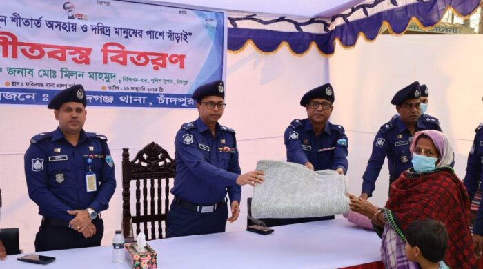 নিজস্ব প্রতিবেদকঃ শীতার্ত দরিদ্র ও অসহায় মানুষের মাঝে শীতবস্ত্র বিতরণ এবং ফরিদগঞ্জ থানা পরিদর্শন করেছেন চাঁদপুরের পুলিশ সুপার মিলন মাহমুদ বিপিএম বার। গতকাল সোমবার ফরিদগঞ্জ থানা প্রাঙ্গনে শীতার্ত দরিদ্র ও