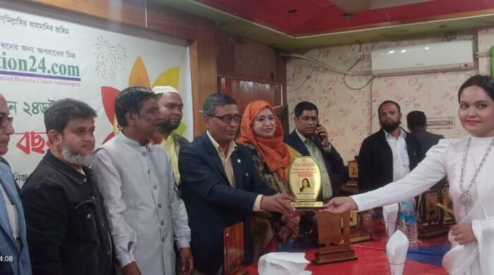 স্টাফ রিপোর্টারঃ চাঁদপুরের বহুল প্রচারিত অনলাইন গণমাধ্যম ক্রাইম এ্যাকশন নিউজ ২৪ ডট কম নারী উন্নয়নে ও নারী জাগরনে বিশেষ অবদান রাখায় বিজয়ী এর ফাউন্ডার তানিয়া ইশতিয়াক খানকে সম্মাননা প্রদান করেন।