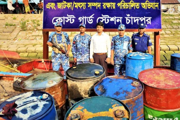 নিজস্ব প্রতিবেদকঃ মতলব উত্তর উপজেলার মোহনপুর দশানি লঞ্চঘাট এলাকায় দুটি ট্রলার থেকে ২৪০০ লিটার চোরাই ডিজেল জব্দ করেছে কোস্টগার্ড। গতকাল সোমবার (৩১ অক্টোবর) বিকালে কোস্টগার্ড সদর দপ্তরের মিডিয়া কর্মকর্তা লেফটেন্যান্ট