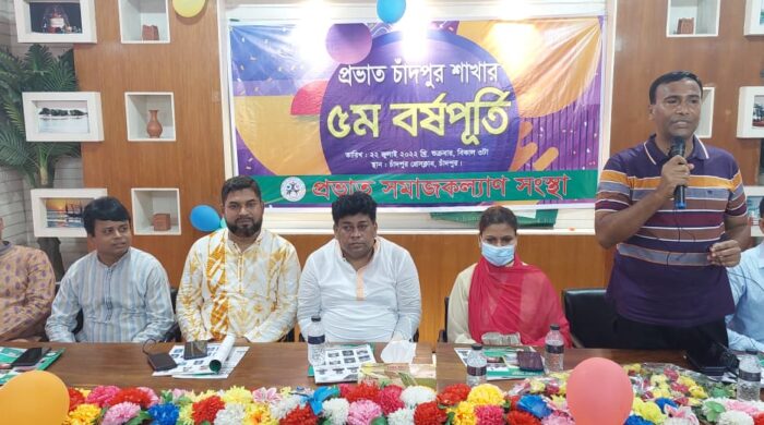 নিজস্ব প্রতিবেদক: সরকারী নিবন্ধনকৃত স্বেচ্ছাসেবী সংগঠন প্রভাত সমাজকল্যাণ সংস্থা, চাঁদপুর শাখার ৫ম বর্ষপূর্তি উপলক্ষে আলোচনা সভা, কেক কাটা, সম্মাননা প্রদান ও নবগঠিত কমিটির পরিচিত সভা অনুষ্ঠিত হয়েছে। শুক্রবার (২২ জুলাই)
