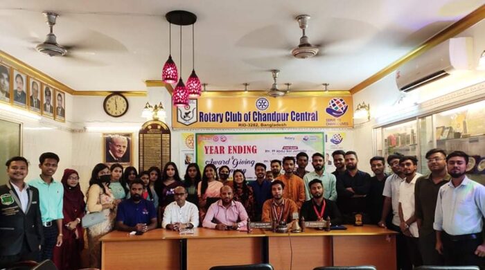 রিয়ন দেঃ  চাঁদপুরে সেন্ট্রাল গার্ডেন রোটার‍্যাক্ট ক্লাবের ২০২১-২২ রোটারি বর্ষের ইয়ার ইন্ডিং ও ক্লাব এওয়ার্ড সিরিমনি অনুষ্ঠিত হয়েছে। ২৭ জুন সোমবার বিকাল ৪ টায় চাঁদপুর রোটারি সেন্টারে এই অনুষ্ঠান সম্পন্ন