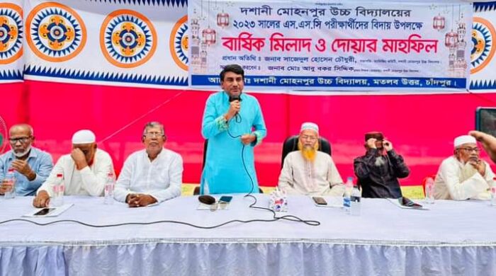 মতলব উত্তর প্রতিনিধিঃ চাঁদপুর মতলব উত্তর উপজেলার নাওভাঙ্গা জয়পুর উচ্চ বিদ্যালয়ের ২০২৩ সনের এসএসসি পরীক্ষার্থীদের সাফল্য কামনায় দোয়া ও মিলাদ মাহফিল অনুষ্ঠিত হয়েছে। মঙ্গলবার (২৫ এপ্রিল) সকালে বিদায়ী সংবর্ধনা ও