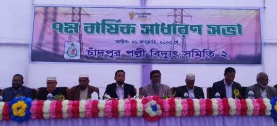 নিজস্ব প্রতিবেদকঃ চাঁদপুর পল্লীবিদ্যুৎ সমিতি-২ এর ৭ম বার্ষিক সাধারণ সভা অনুষ্ঠিত হয়েছে। বৃহস্পতিবার সকাল ১০টায় চাঁদপুর পল্লীবিদ্যুৎ সমিতি-২ অফিসের মাঠে সমিতির পরিচালনা বোর্ডের সভাপতি ও এলাকা পরিচালক এম এ মালেকের