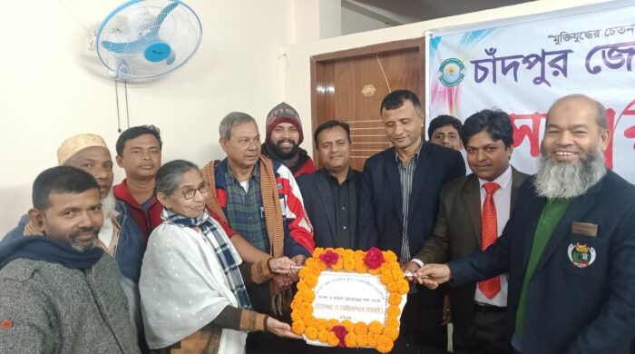 নিজস্ব প্রতিবেদকঃ চাঁদপুর জেলা সাংবাদিক ক্লাবের নবগঠিত কমিটির সভাপতি আবদুর রহমান ও সাধারণ সম্পাদক জাকির হোসেনসহ সংগঠনের সকলকে এক বার্তায় শুভেচ্ছা জানিয়েছেন জেলা আওয়ামীলীগের সাধারণ সম্পাদক বীর মুক্তিযোদ্ধা আলহাজ্ব আবু