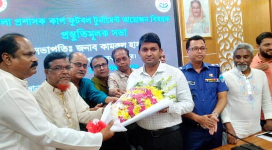 নিজস্ব প্রতিবেদকঃ চাঁদপুর জেলা ক্রীড়া সংস্থার সভাপতি ও জেলা প্রশাসক মোঃ কামরুল হাসানকে ফুলের শুভেচ্ছা জানিয়েছেন চাঁদপুর জেলা ফুটবল অ্যাসোসিয়শনের নেতৃবৃন্দ। রোববার ( ১১ সেপ্টেম্বর ) বিকেলে জেলা প্রশাসকের সম্মেলন