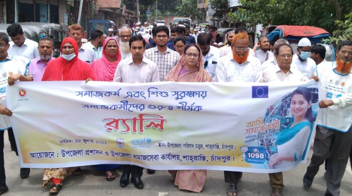শাহরাস্তি প্রতিনিধিঃ চাঁদপুরের শাহরাস্তিতে সমাজকর্ম এবং শিশু সুরক্ষায় সমাজকর্মীদের গুরুত্ব শীর্ষক র্যালী ও পথসভা অনুষ্ঠিত হয়েছে।গতকাল সকালে উপজেলা প্রশাসন ও উপজেলা সমাজসেবা কার্যালয়ের আয়োজনে এটি অনুষ্ঠিত হয়। উপজেলা নির্বাহী অফিসার