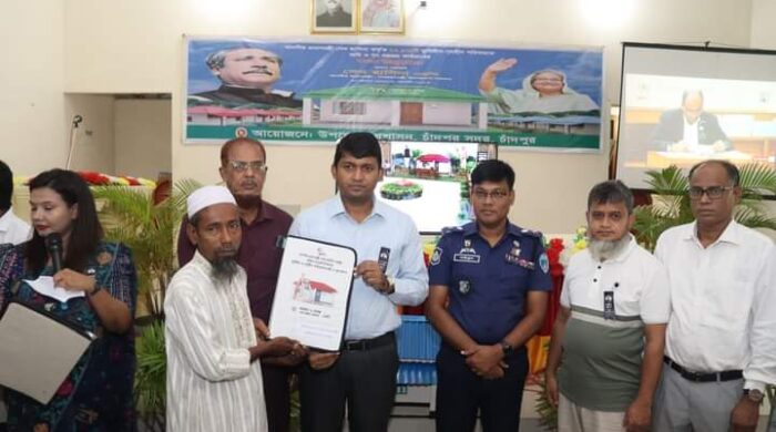 নিজস্ব প্রতিবেদকঃ মুজিব বর্ষে”বাংলাদেশের একজন মানুষও গৃহহীন থাকবে না” প্রধানমন্ত্রীর এই নির্দেশনা বাস্তবায়নের লক্ষ্যে দেশের সকল ভূমিহীন ও গৃহহীন পরিবারকে জমি ও গৃহ প্রদান কার্যক্রম চলমান রয়েছে।তারই অংশ হিসাবে চাঁদপুরে