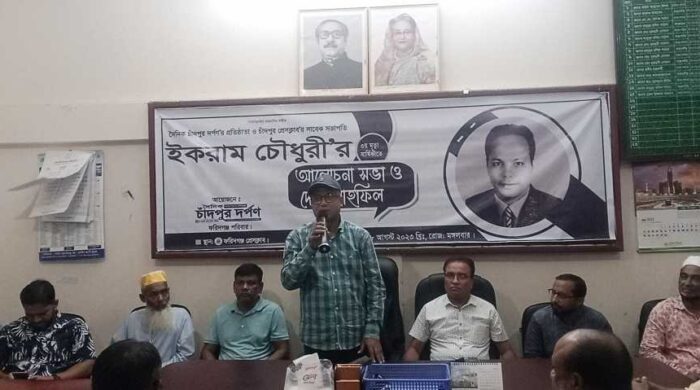 জাহিদুল ইসলাম ফাহিম : দৈনিক চাঁদপুর দর্পণ’র প্রতিষ্ঠাতা ও চাঁদপুর প্রেসক্লাব’র সাবেক সভাপতি ইকরাম চৌধুরী’র ৩য় মৃত্যু বার্ষিকী উপলক্ষে ফরিদগঞ্জে আলোচনা সভা ও দোয়া মাহফিল সম্পন্ন হয়েছে। মঙ্গলবার (৮ আগষ্ট)