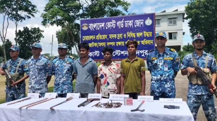 মোঃ মুছা তপদারঃ মতলব উত্তরে একটি দুইনলা বন্দুক, বিভিন্ন ধরনের দেশীয় অস্ত্র ও বিপুল অস্ত্র তৈরীর সরঞ্জামাদিসহ ডাকাত দলের তিন সদস্যকে আটক করেছে কোস্টগার্ড। গতকাল শনিবার (২৪ জুন) সকালে কোস্টগার্ড