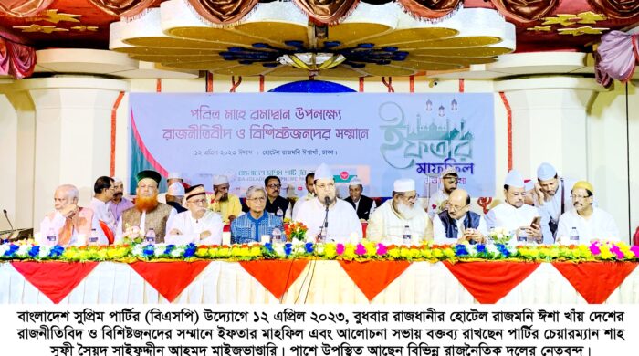 রাজনৈতিক দলগুলোর মধ্যে কাঁদা ছোড়াছুড়ি বন্ধ করে দেশের উন্নয়নে কাজ করতে হবে ————– সৈয়দ সাইফুদ্দীন আহমদ নিজস্ব প্রতিবেদক: বাংলাদেশ সুপ্রিম পার্টির (বিএসপি) উদ্যোগে ১২ এপ্রিল বুধবার রাজধানী ঢাকা হোটেল রাজমনি